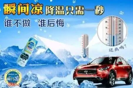 喷雾降温法 方法:关闭所有车窗,只打开驾驶座一侧的车门,然后对着车内4个座位喷洒价值45元的降温剂,连续喷雾10秒。 推荐指数:☆ 车用降温喷雾剂的主要成分是干冰。干冰在空气中容易升华为二氧化碳,需要吸收大量的热,能使周围温度快速降低。降温时间持续很短,降温幅度很小,效果并不明显。 值得注意的是,不少喷雾剂混合有芳香剂,在密闭的车内会造成不适感,也对健康有影响,特别是患有哮喘、慢性支气管炎、肺气肿等呼吸道疾病或是有过敏体质的人群,更应格外注意。此外,喷雾剂长时间置于50度以上的环境(夏天暴晒后的车辆车内很容易高于此温度),也容易引发爆炸危险,用起来也不是很划算。 车辆长时间暴晒,会引发雨刮、油漆的质变,车内座椅真皮、操作台的加速老化。所以,尽量将车停在室内停车场或室外阴凉处,避免阳光直射,再好的方法也不如预防。