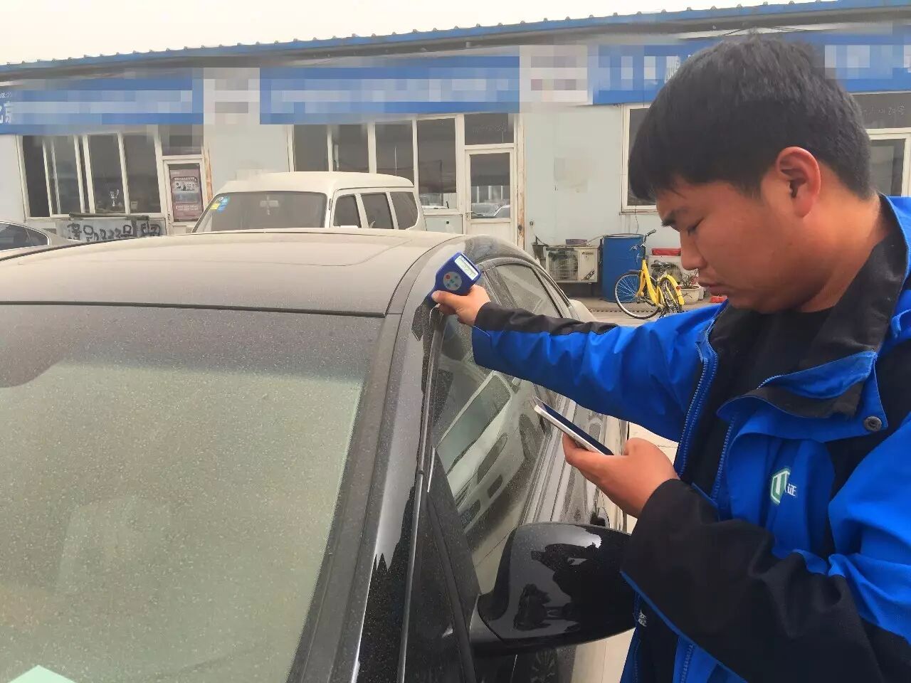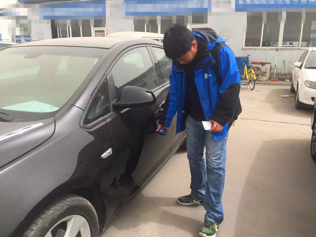 包括外观钣金、车门内框架钣金、发动机舱及后备箱的钣金检查。检查钣金有无变形、凹陷,油漆有无修复,这是判断一辆车是否发生过重大碰撞事故的开始。车身油漆我们用漆膜仪来检测。