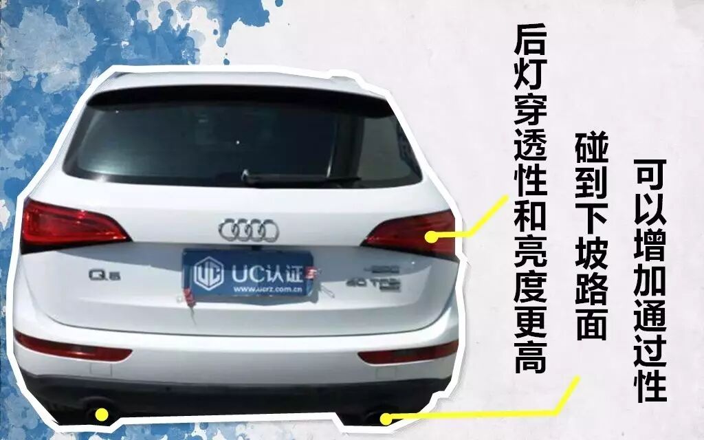 后灯穿透性和亮度更高,两个非正圆形排气管,碰到下坡路面可以增加通过性。