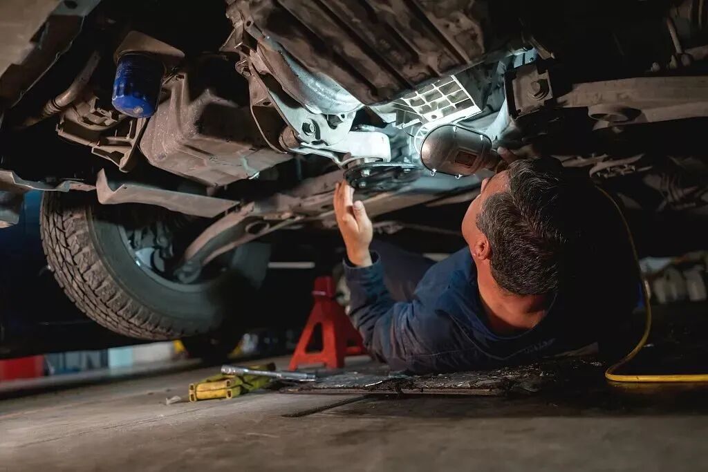 造成底盘托底的原因有很多,比如在超载时过减速带,或是行驶时轧沟轧坑,被巨大异物从车底划过。毕竟像发动机油和变速箱油底壳,一些传动机构和电子元器件都在底盘位置,所以底盘受伤对车的影响也是非常大的。这就需要检查汽车底盘上的覆盖件,比如像通常由塑料或是金属制成的底盘下护板是否都完整且没有破损或划痕,看固定用的螺丝或是塑料卡扣是否有变形或脱落。