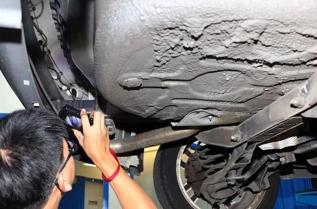 判断水泡车的一个重要依据也是看车底盘,主要检查底盘有无水渍或是大面积的生锈,需要仔细观察排气管部分是否有腐蚀及溃烂,尤其是像裸露金属的部分。