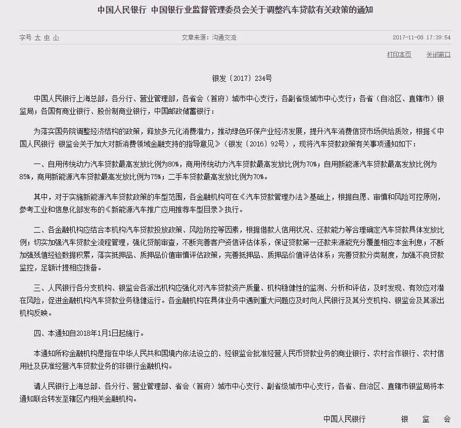二、各金融机构应结合本机构汽车贷款投放政策、风险防控等因素,根据借款人信用状况、还款能力等合理确定汽车贷款具体发放比例;切实加强汽车贷款全流程管理,强化贷前审查,不断完善客户资信评估体系,保证贷款第一还款来源能充分覆盖相应本金利息;不断加强残值经验数据积累,落实抵押品、质押品价值审慎评估政策,完善抵押品、质押品价值评估体系;完善贷款分类制度,加强不良贷款监控,足额计提相应拨备。