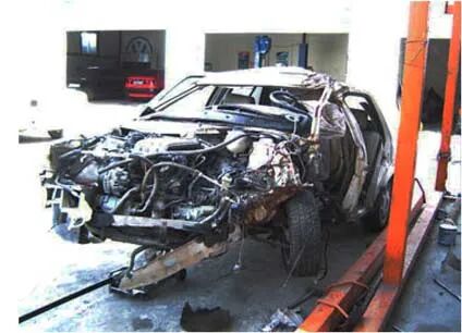 大部纵梁都是由高强度钢制成,如果纵梁受损,那么可想而知些时撞击力一定不小,而此时受到影响还有中网、大灯、水箱、冷凝器、电子扇、排气歧管等都受到撞击影响,而此时发动机已经没有碰撞防护了。大多数维修纵梁都是通过拉伸校正的方式,让纵梁恢复至原有安装位,部分修理厂甚至会采用切割焊接的方法维修,但此时的纵梁是没有原有强度的了。简单的说,将纸盒挤压变形再拉回原貌,其褶皱是无法消除的。