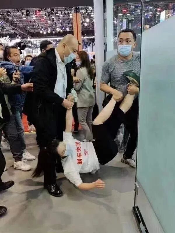 4月19日,2021上海国际车展正式开幕,上午11时许,特斯拉展台上出现一名女子,站在特斯拉车顶上,身着白衣,衣服上有特斯拉车标图案,并写有“刹车失灵”字样,疑为车主维权。随后,该女子疑被安保人员带离。